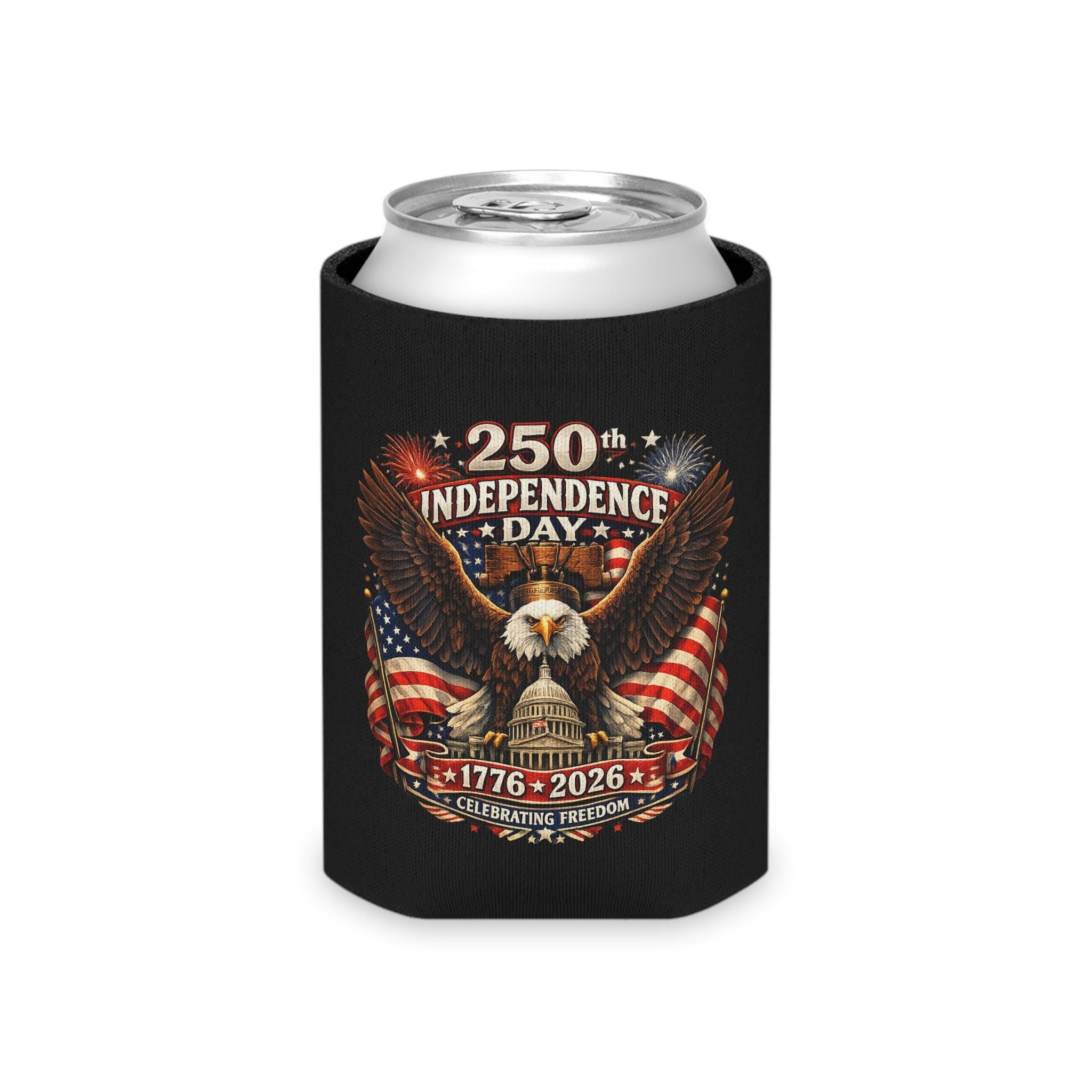 250th Independence Day Eagle Can Cooler | 1776-2026 Patriotic Sleeve